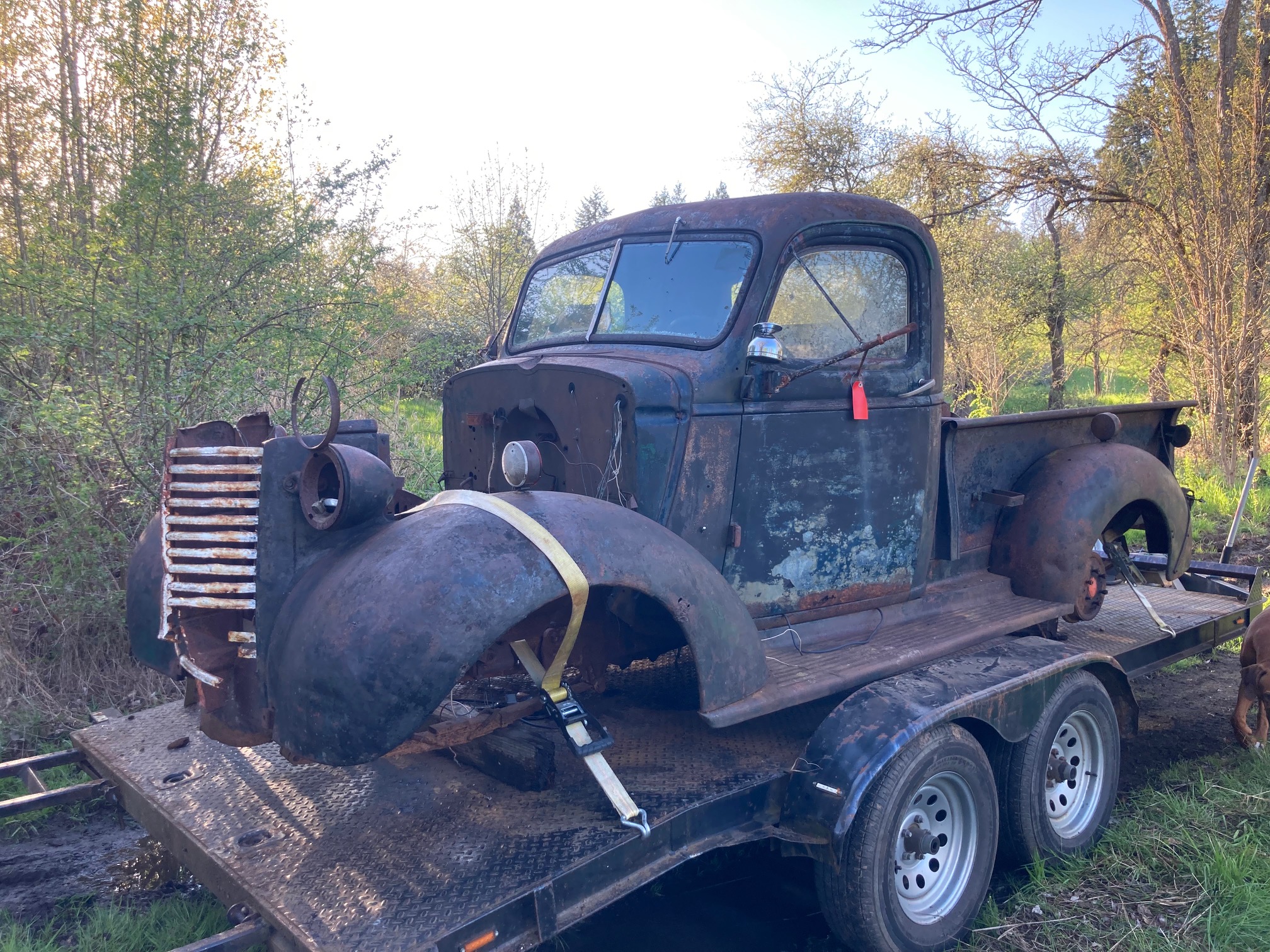 This one is the 1940, and came without drivetrain or wheels, and lacks a title at the moment. The cab is very rust free, as are much of the remaining parts of the other bed and gate.