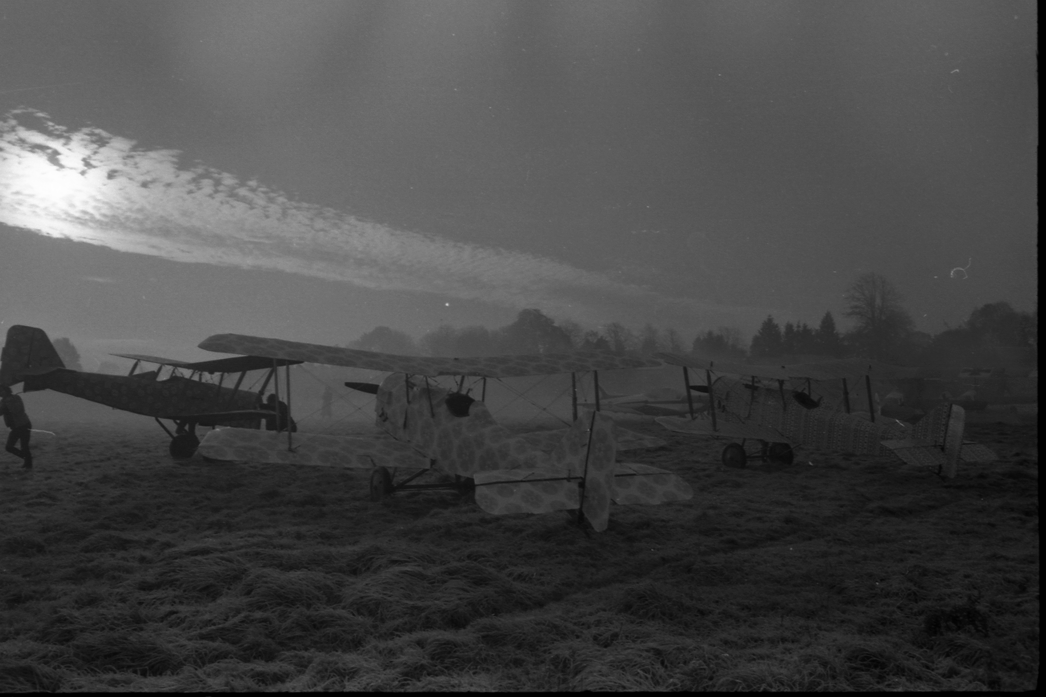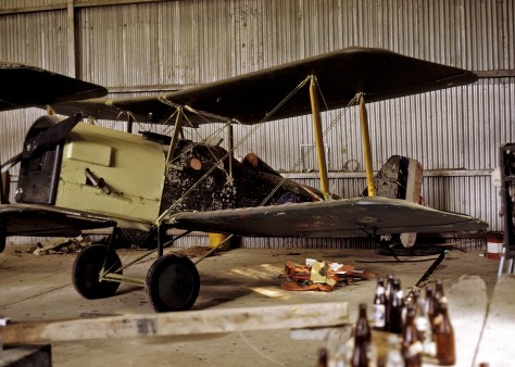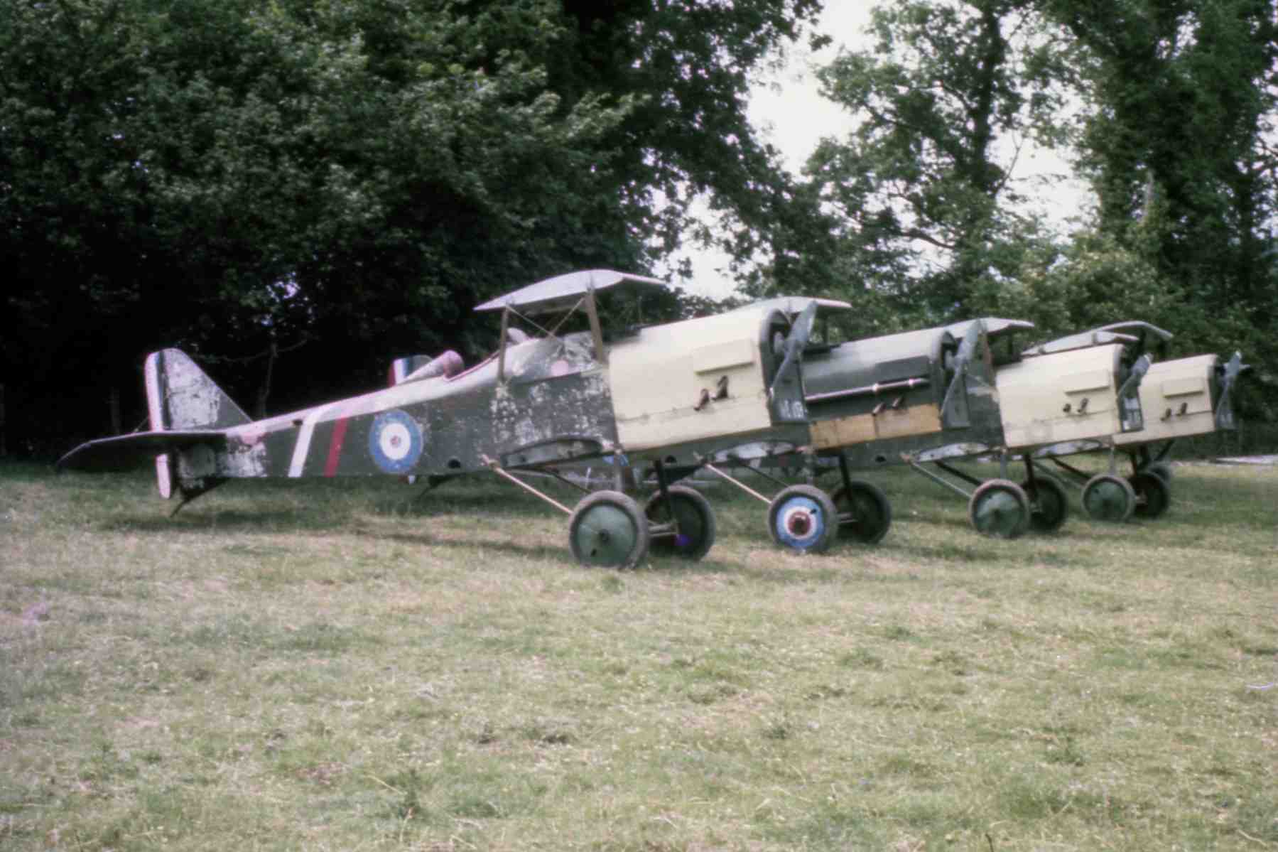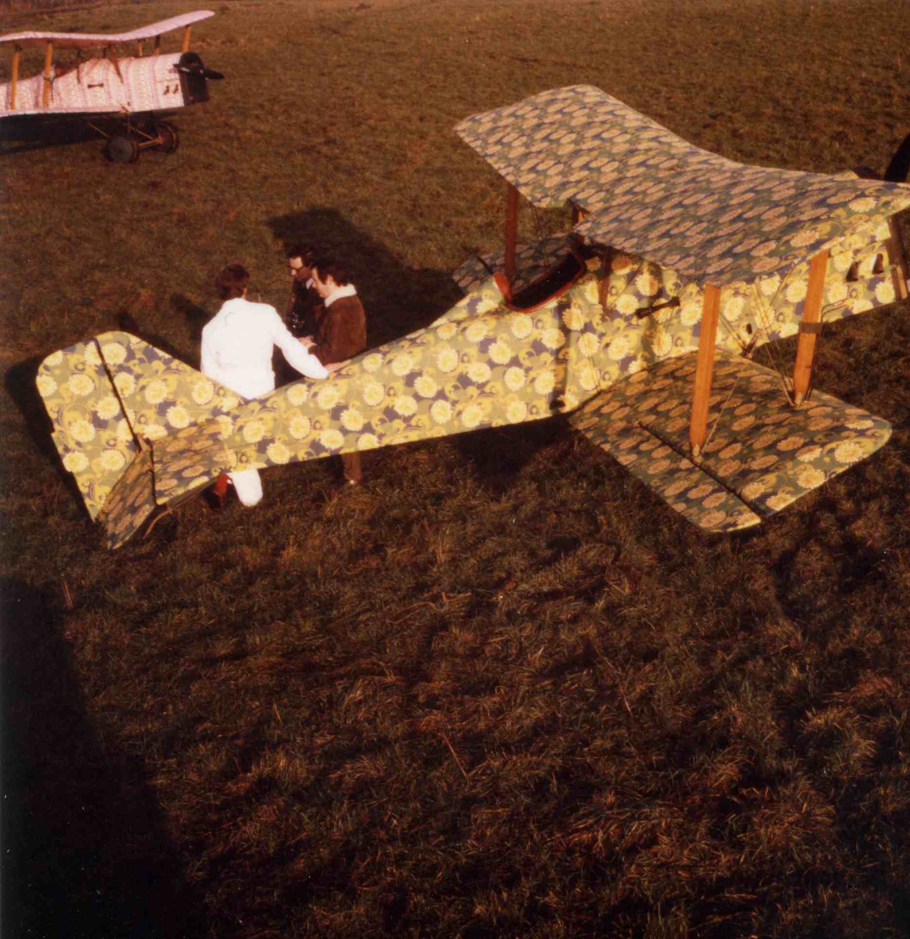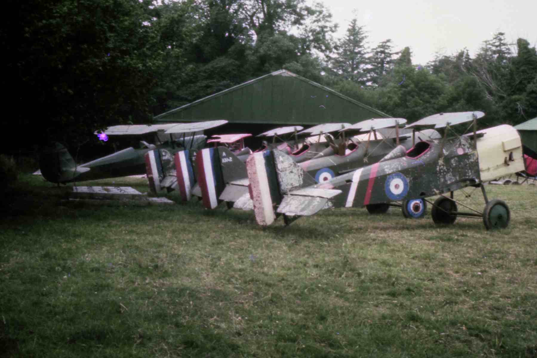 Another odd thing that these old birds experienced was an occasional use in advertising. These Se5a of ours were covered with floral wallpaper, using Heinkel glue. Yep, they made wallpaper glue. Only thing is, as soon as they were airbourne, the stuff came right off!! See the photo below.