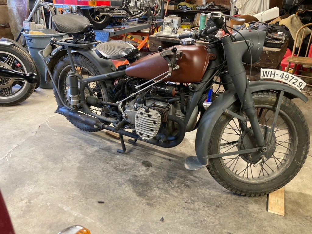 This machine began life in 1950. Today, in 2019, it is beginning it’s new life as a WWII BMW R-71 copy.