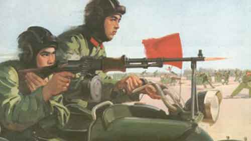 Germany fell, and the segment of Germany that ended up in Soviet control was where the plant that manufactured the bikes was located. They became EMW, as the rounded part of the B was severed to form a new logo, with Blue replaced to Red. Soviet assistance given to China during the US military conflict in Korea saw them exchanging many things, with the pattern to this motorcycle and side car combination being amongst the materials exchanged.