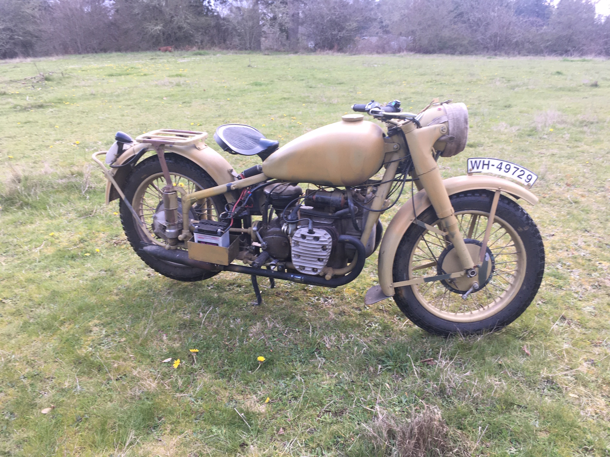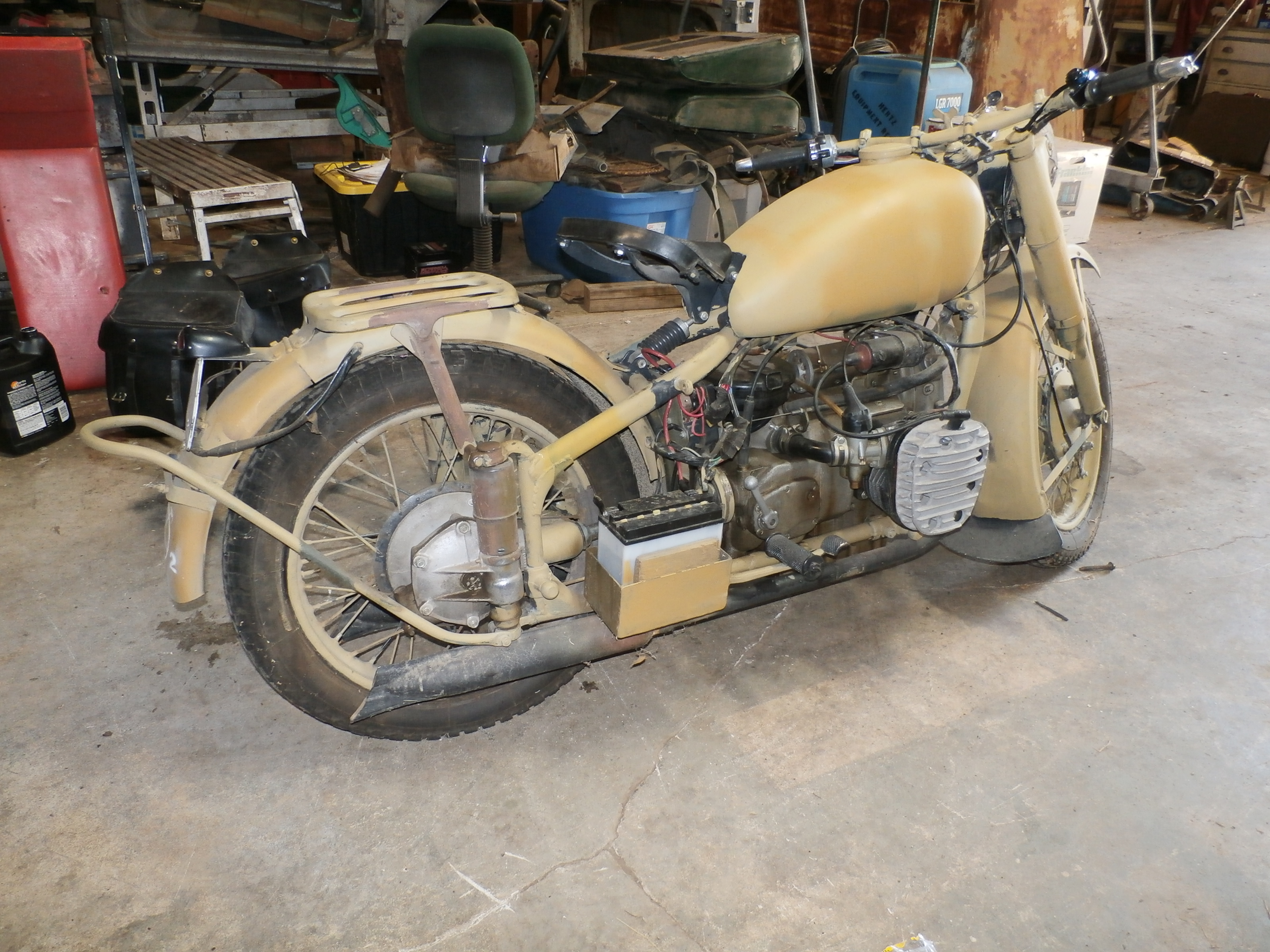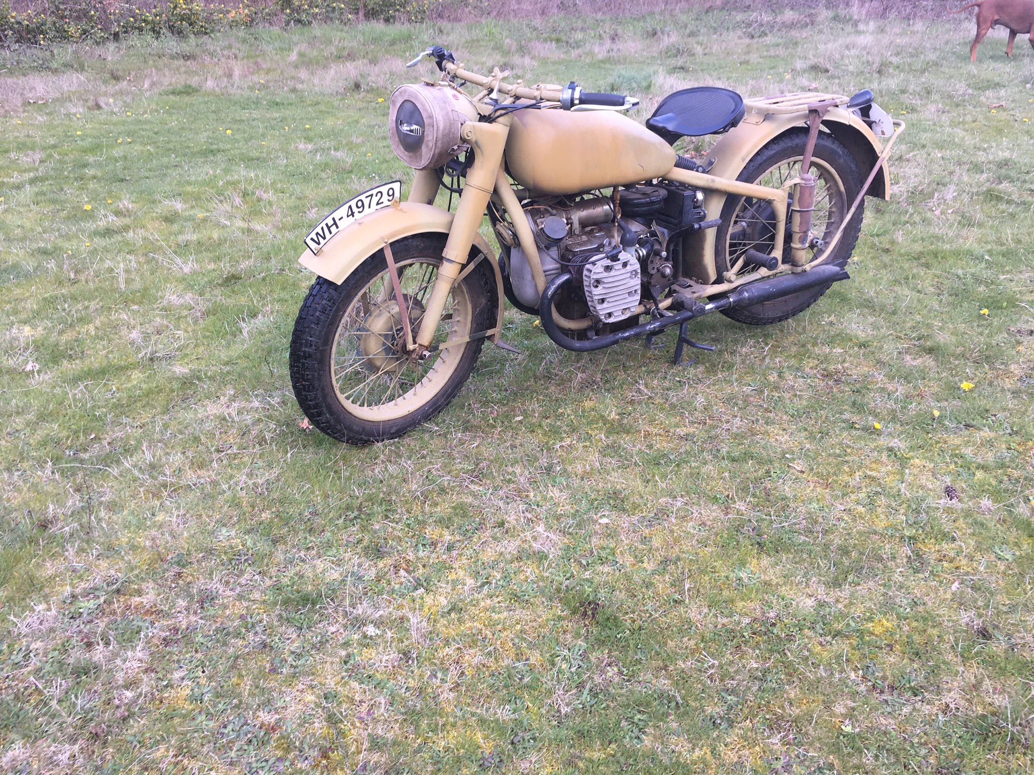 This machine began life in 1950. Today, in 2019, it is beginning it’s new life as a WWII BMW R-71 copy.