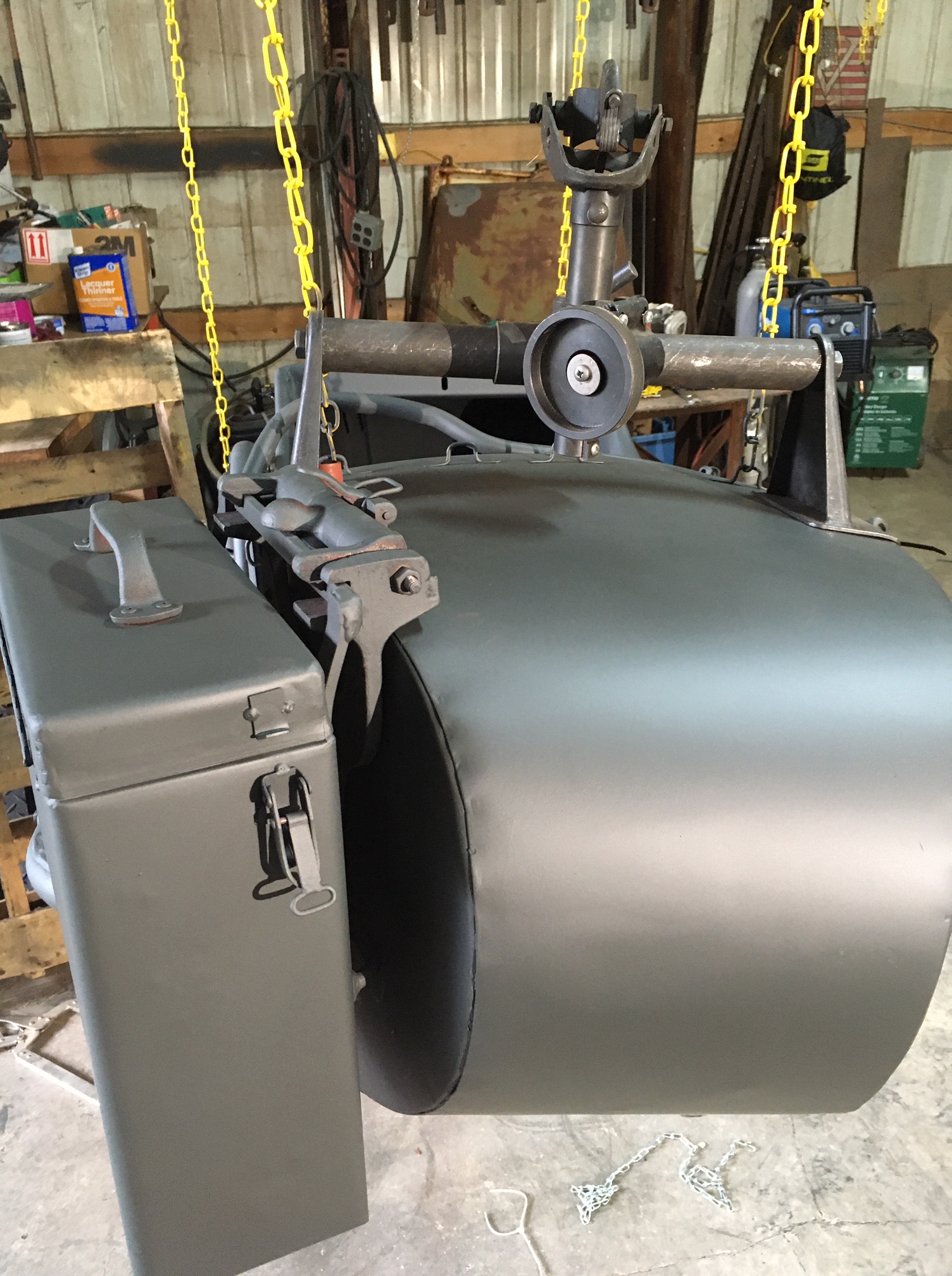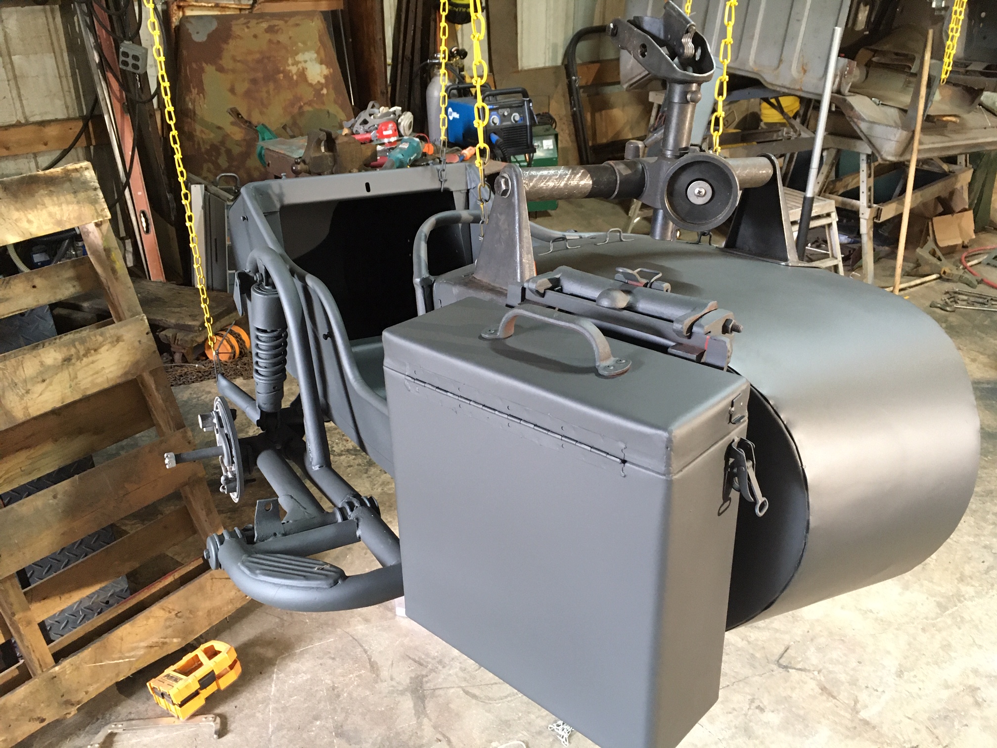 Once it is all assembled, we will pull the ammo cans off and give it one more re-spray, but the majority of the paint is complete.